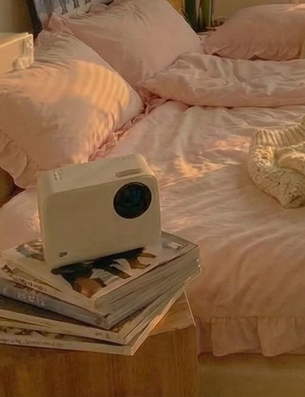 The ultimate cozy hideaway. Pastel tones, floor cushions, and a home cinema setup for K-drama marathons. A space designed for comfort, "healing time," and dreaming.
